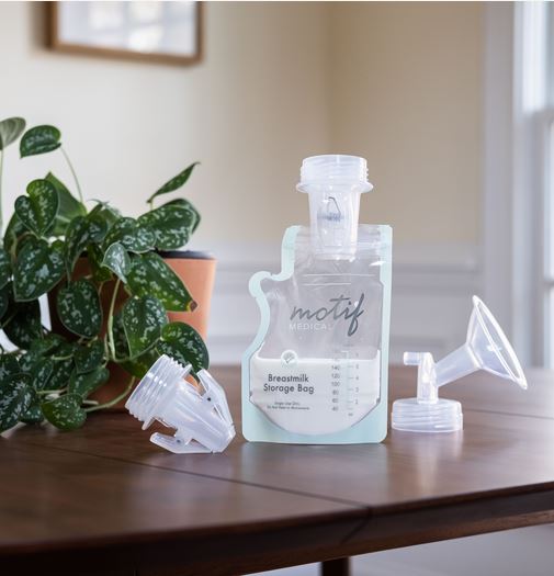 Pump directly into your milk storage bag with the Motif wide mouth pump-to-bag adapter. Start saving time with three simple steps: